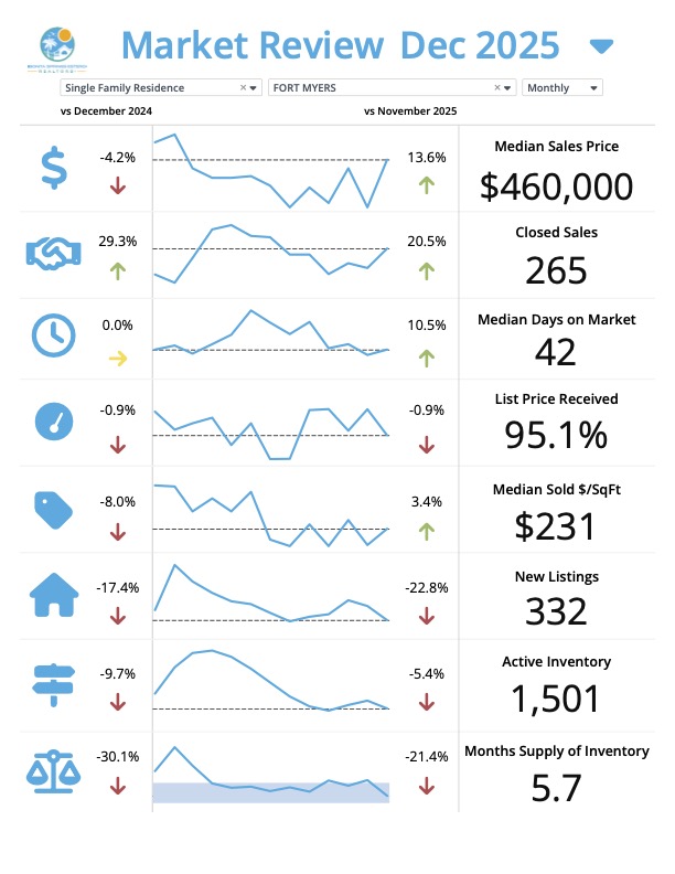 โ Takeaway: The Fort Myers single-family home market in December 2025 is experiencing a significant uptick in sales and median price compared to the previous month. This indicates a strengthening market with high demand.