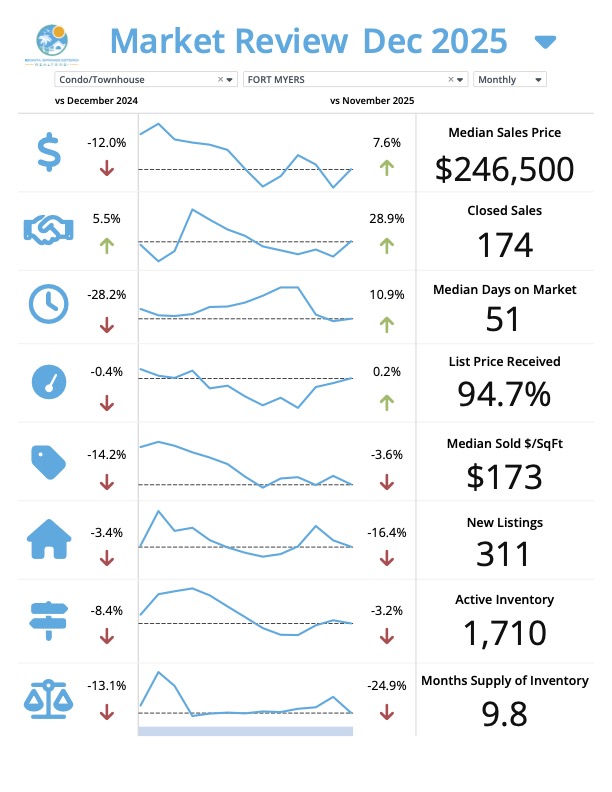 ๐ Fort Myers Beach โ Condos & Townhouses (December 2025 vs 2024)