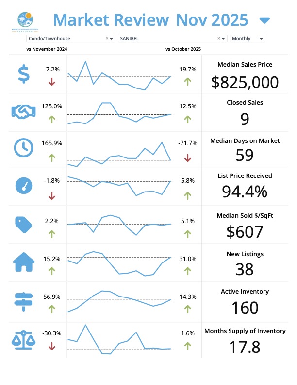 ๐ Sanibel – Condos & Townhouses (November 2025 vs 2024)