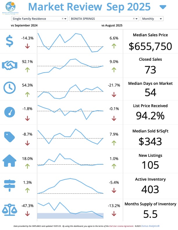 π Bonita Springs – Single Family Homes (September 2025 vs 2024)