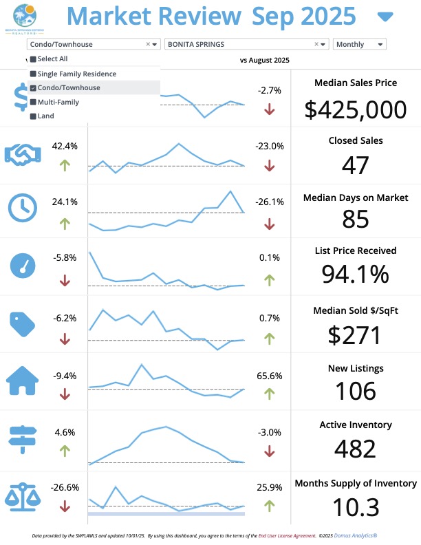 π Bonita Springs – Condos & Townhouses (September 2025 vs 2024)
