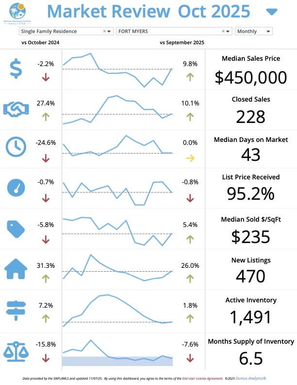 π Fort Myers – Single Family Homes (October 2025 vs 2024)