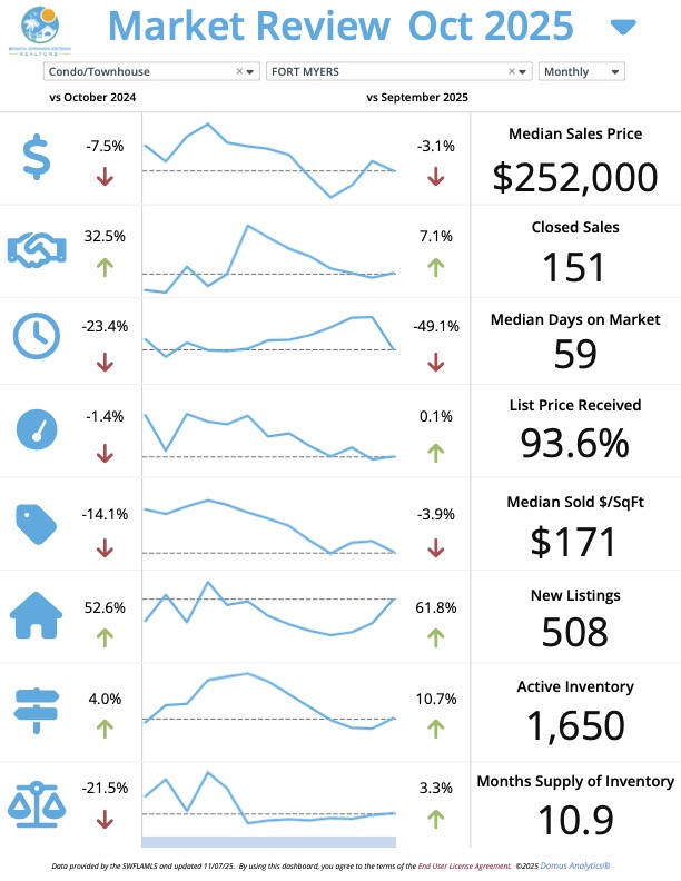 π Fort Myers – Condos & Townhouses (October 2025 vs 2024)