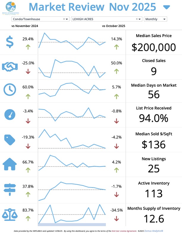 ๐ Lehigh Acres – Condos & Townhouses (November 2025 vs 2024)