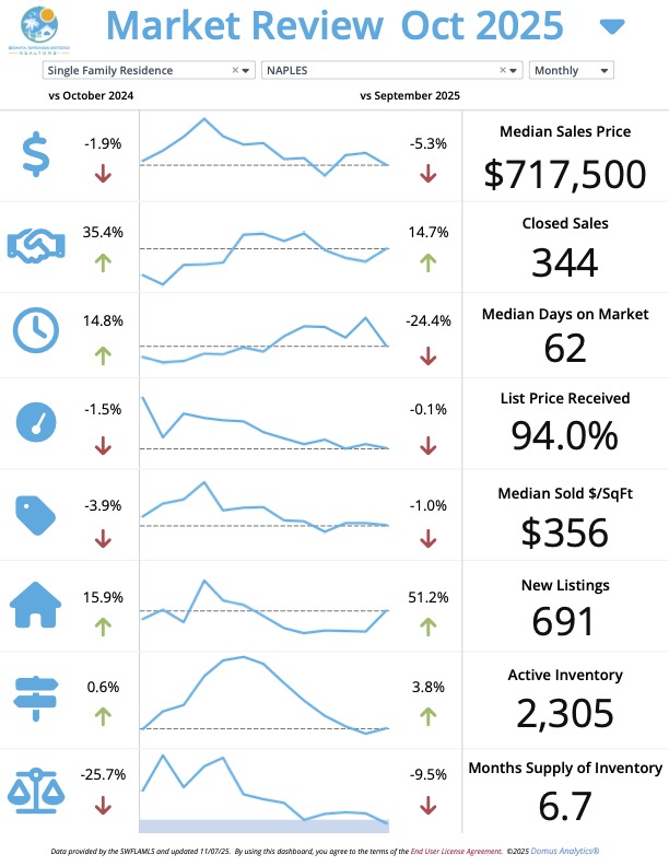 ๐ Naples – Single Family Homes (October 2025 vs 2024)