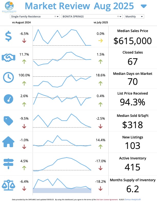 ๐ Bonita Springs – Single Family Homes (August 2025 vs August 2024)