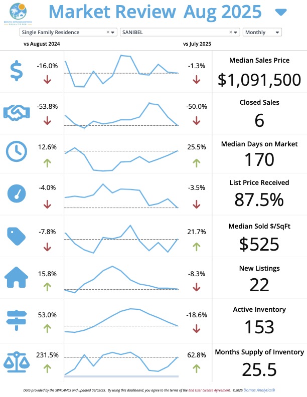 ๐ Sanibel – Single Family Homes (August 2025 vs August 2024)