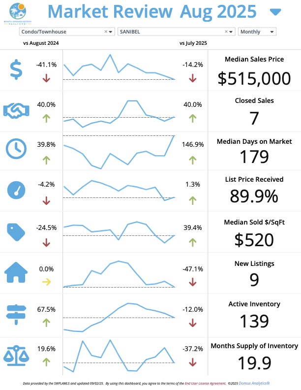 ๐ Sanibel – Condos & Townhouses (August 2025 vs August 2024)